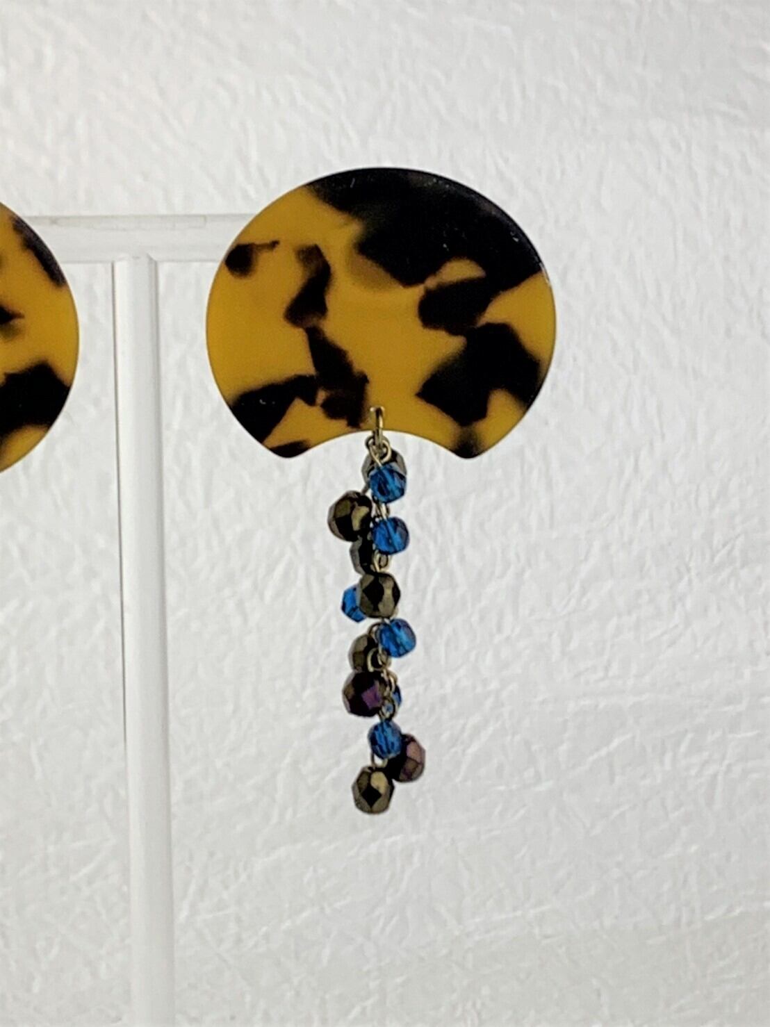 マットなベッコウ柄のアクリルパーツにチェコガラスをシャラシャラと。