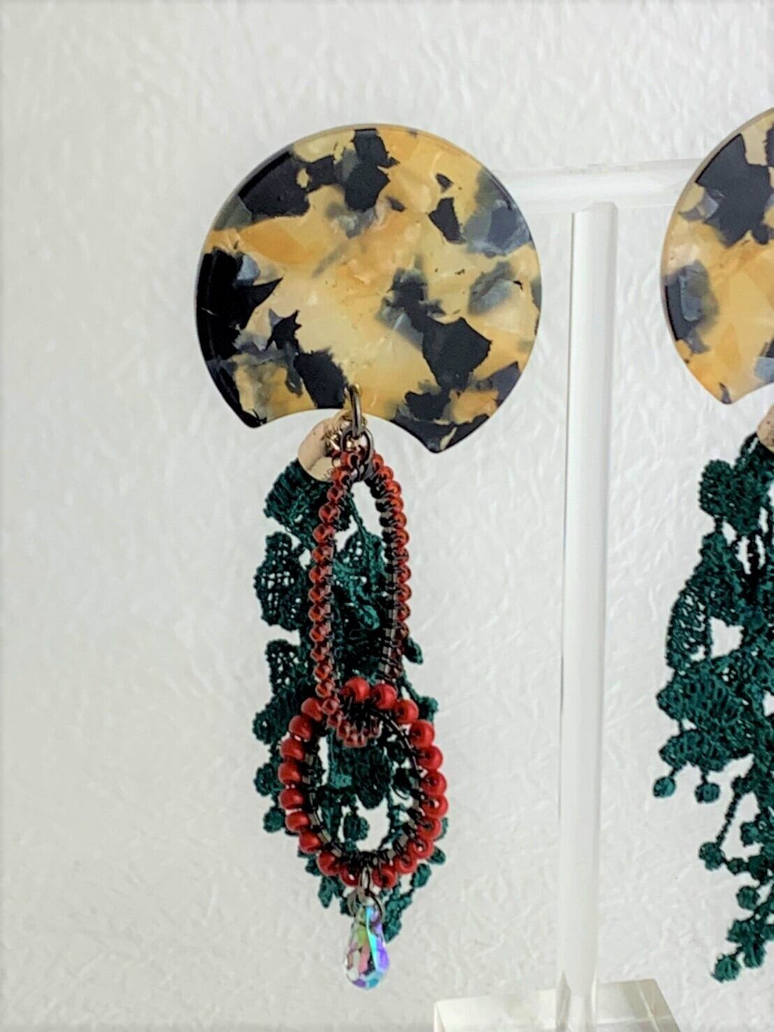 ▽大きなベッコウ×グリーンレース▽ピアス&イヤリング