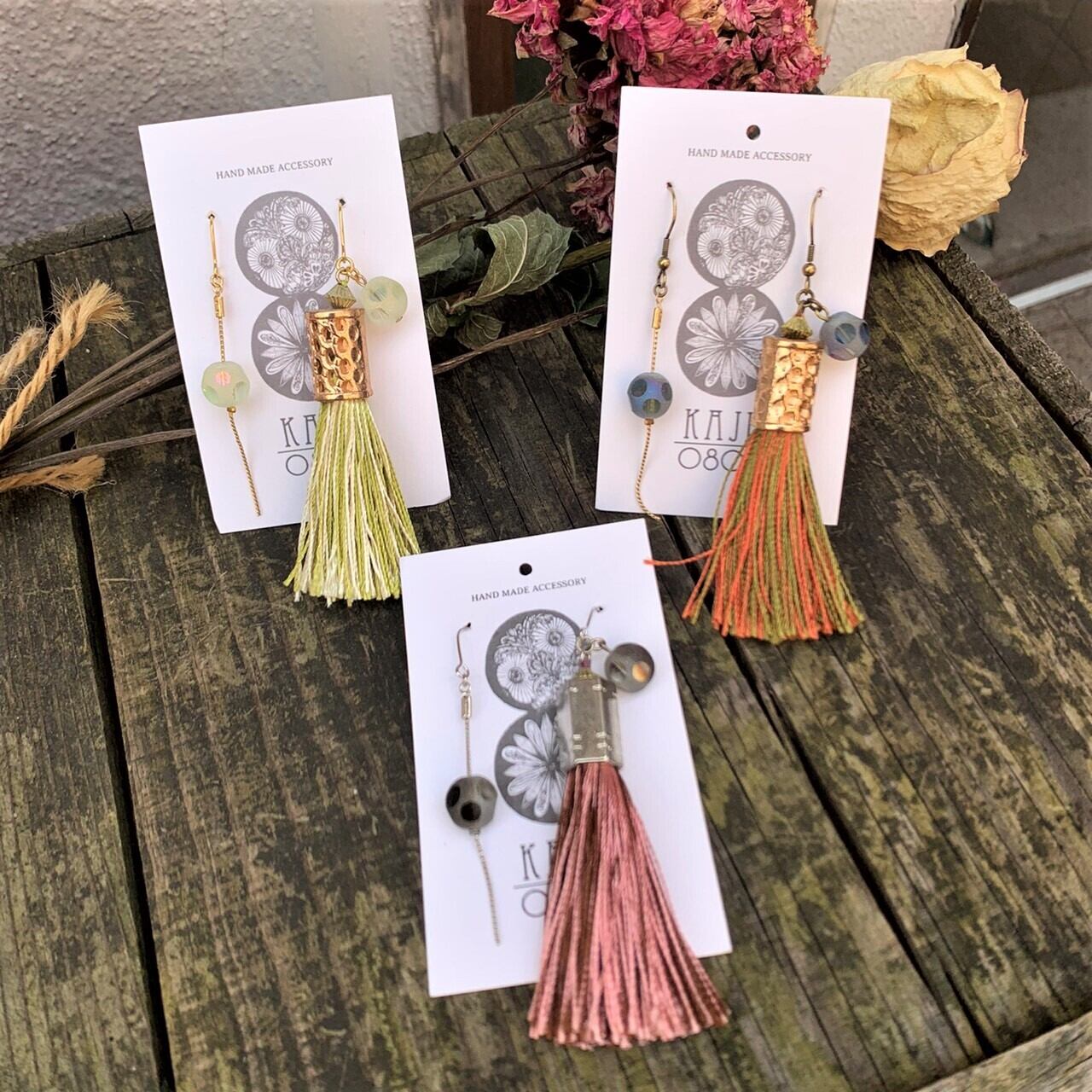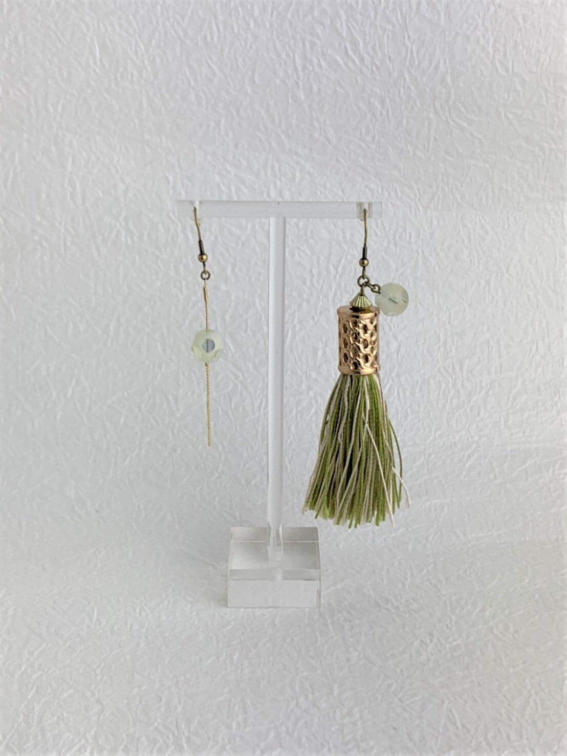 ▽きらきらドットガラス&タッセルのアシンメトリー▽ピアス&イヤリング
