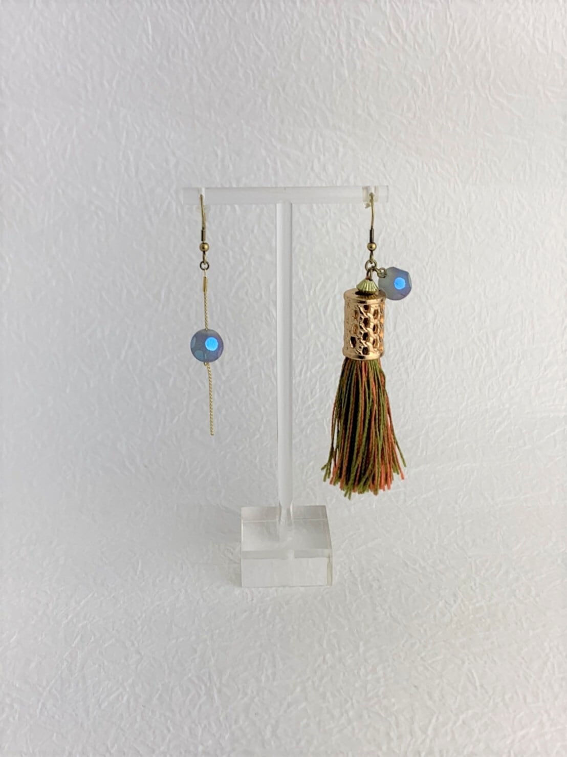 ▽きらきらドットガラス&タッセルのアシンメトリー▽ピアス&イヤリング