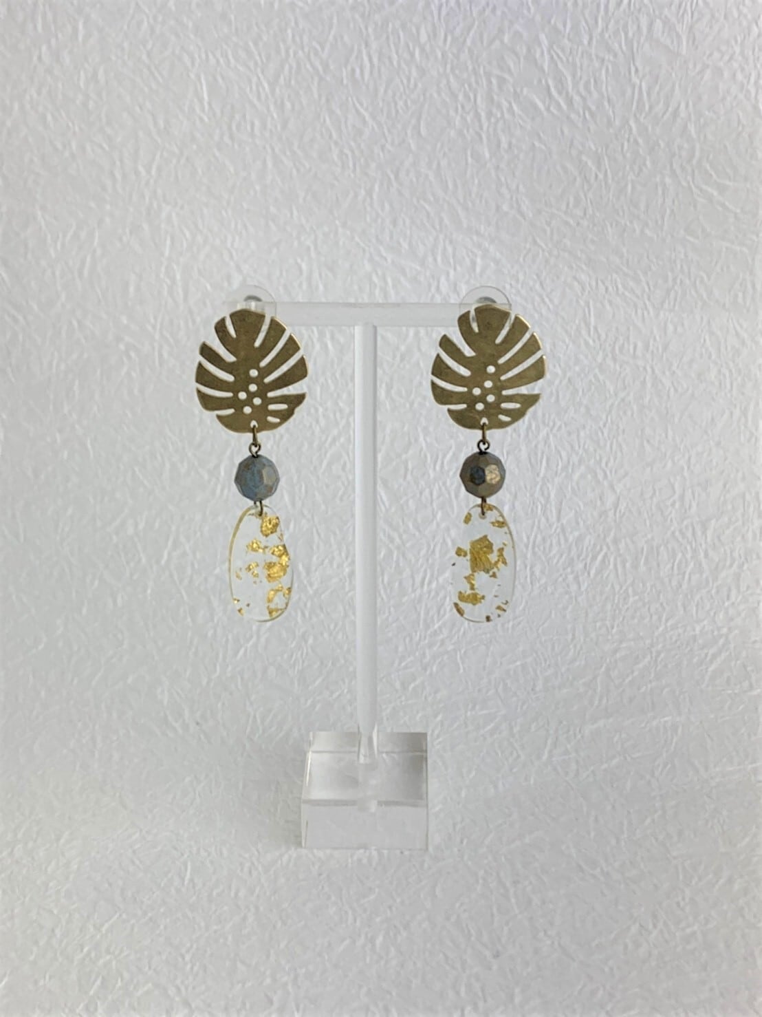 大好きな方が多いモンステラの葉のモチーフに金箔or銀箔を閉じ込めたパーツを