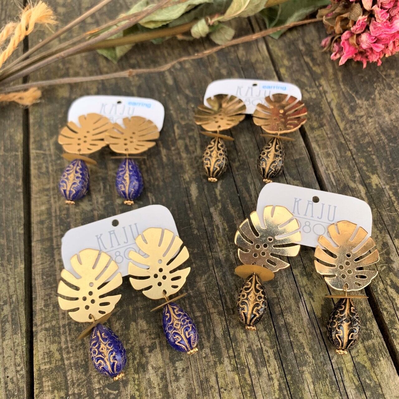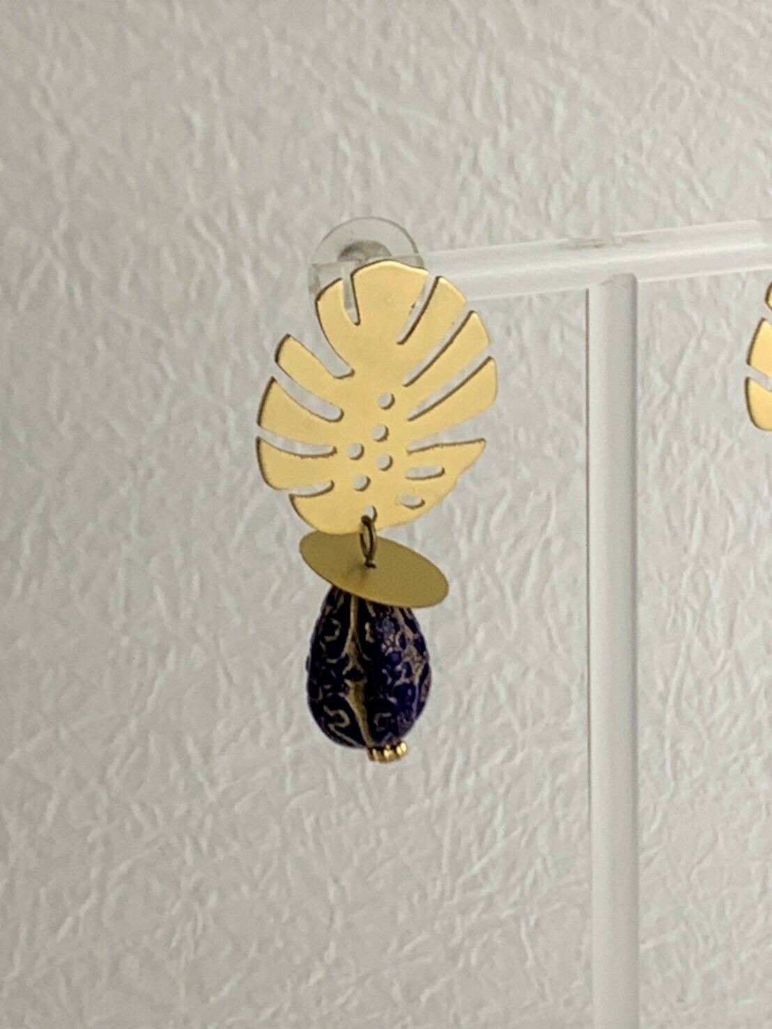 ▽モンステラシリーズ▽ブルーの雫ピアス&イヤリング