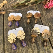 大好きな方が多いモンステラの葉のモチーフにスパンコールと雫の形のパーツを