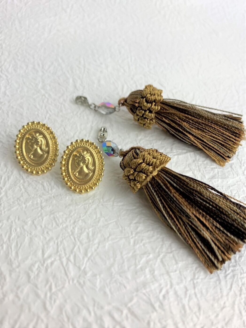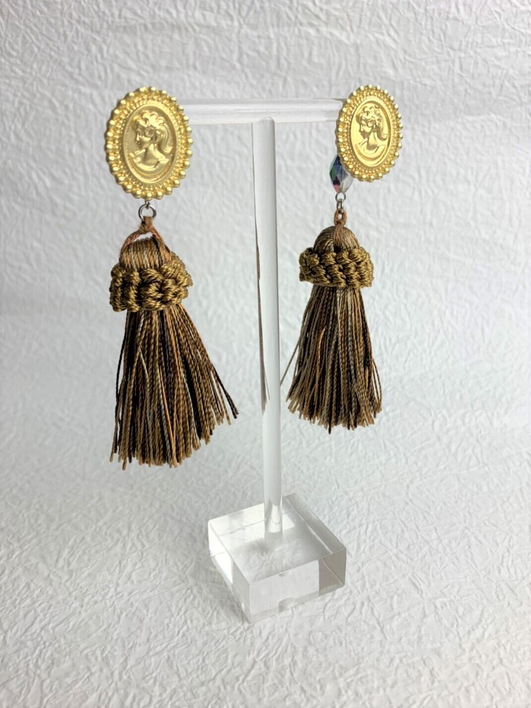 ▽マットなメタルカメオ×タッセル▽ピアス&イヤリング