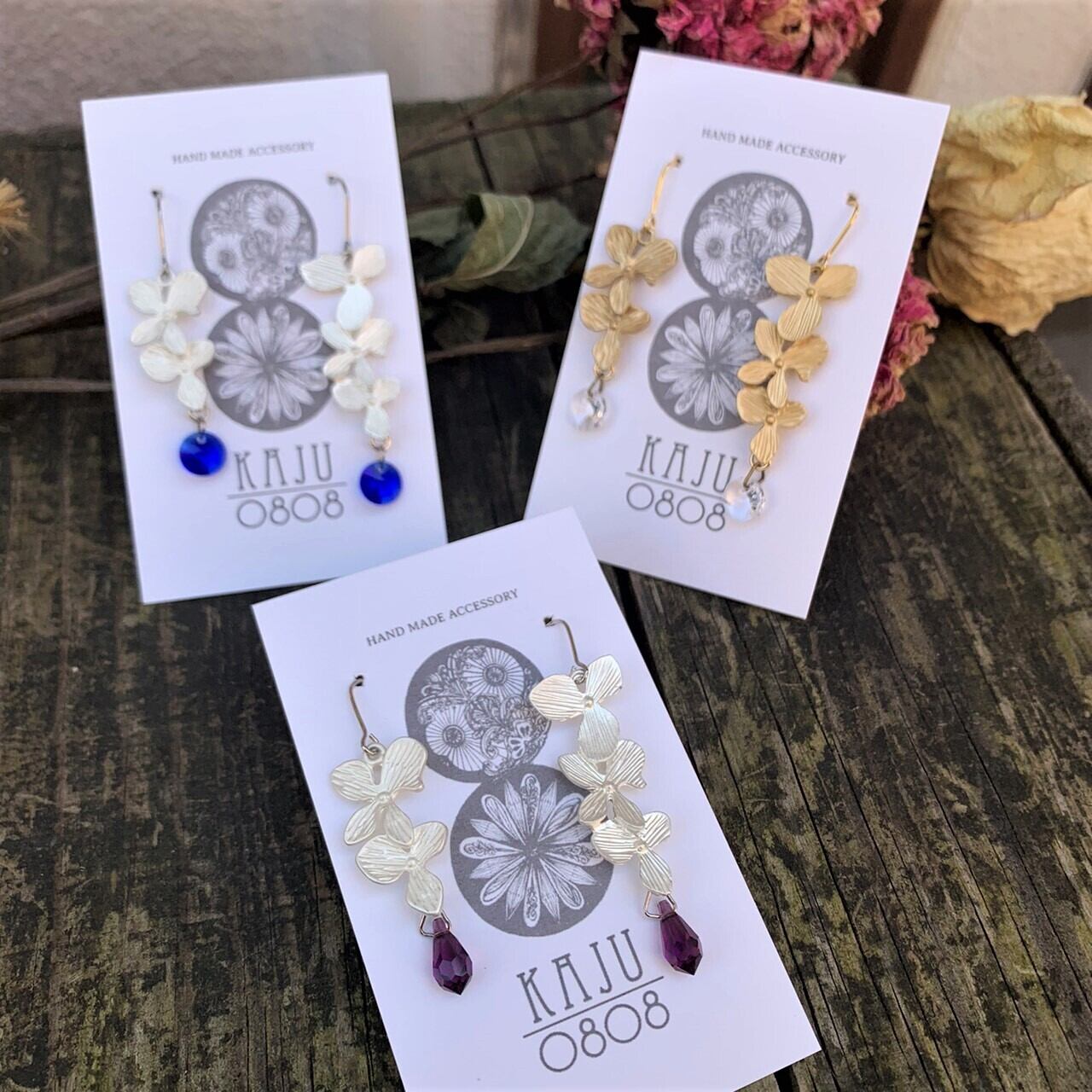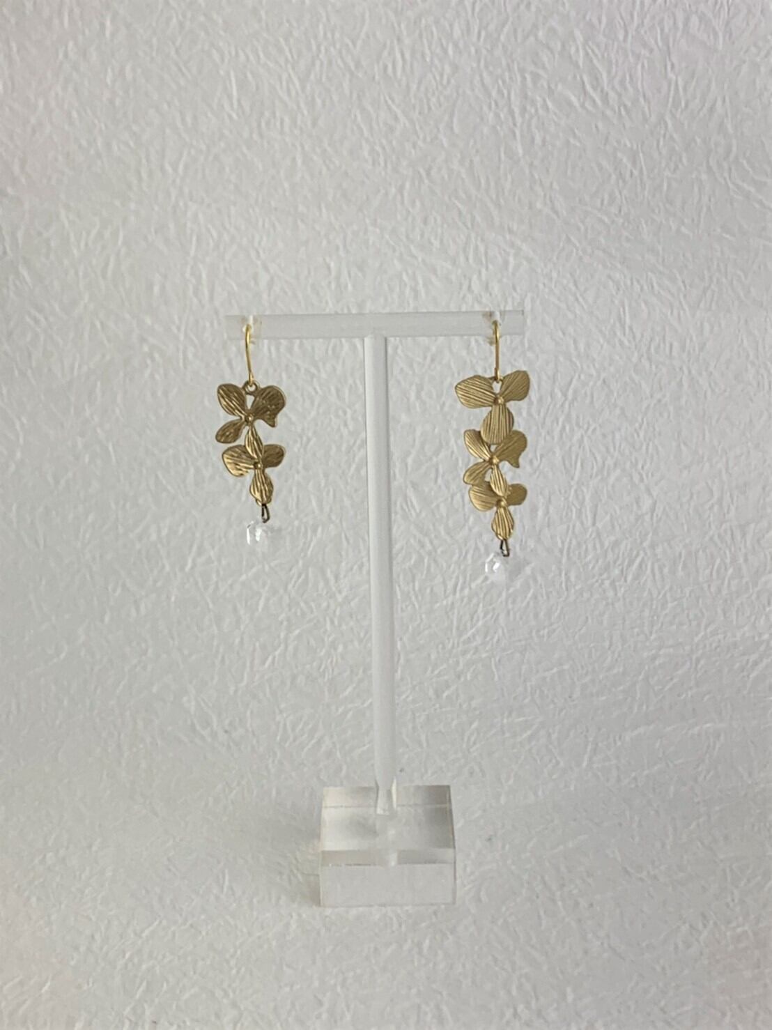 ▽マットなメタル花とスワロフスキー▽ピアス&イヤリング
