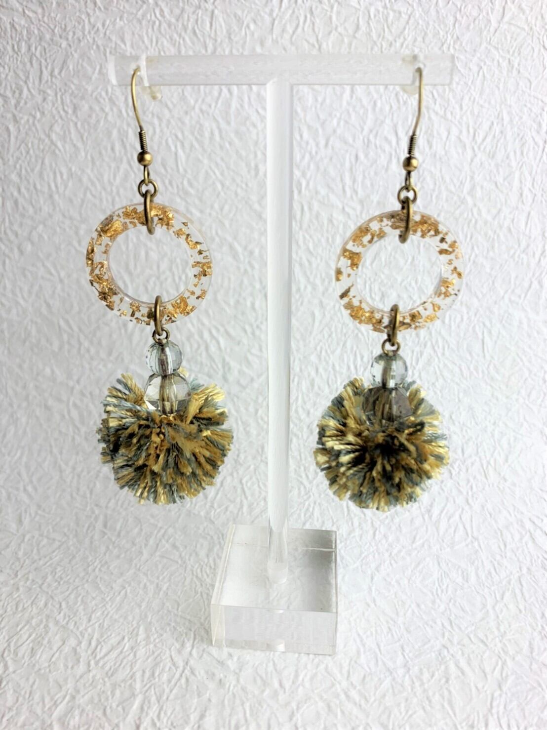 ▽金箔入り輪っかとボンボン▽ピアス&イヤリング